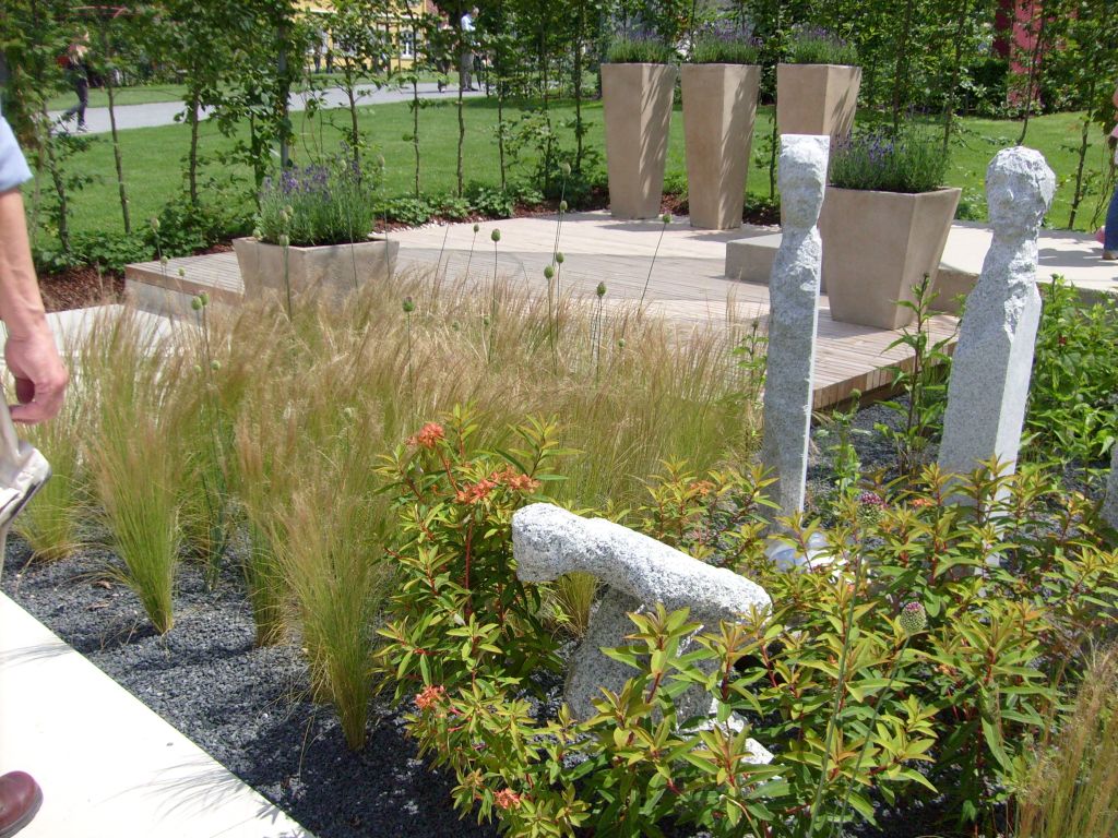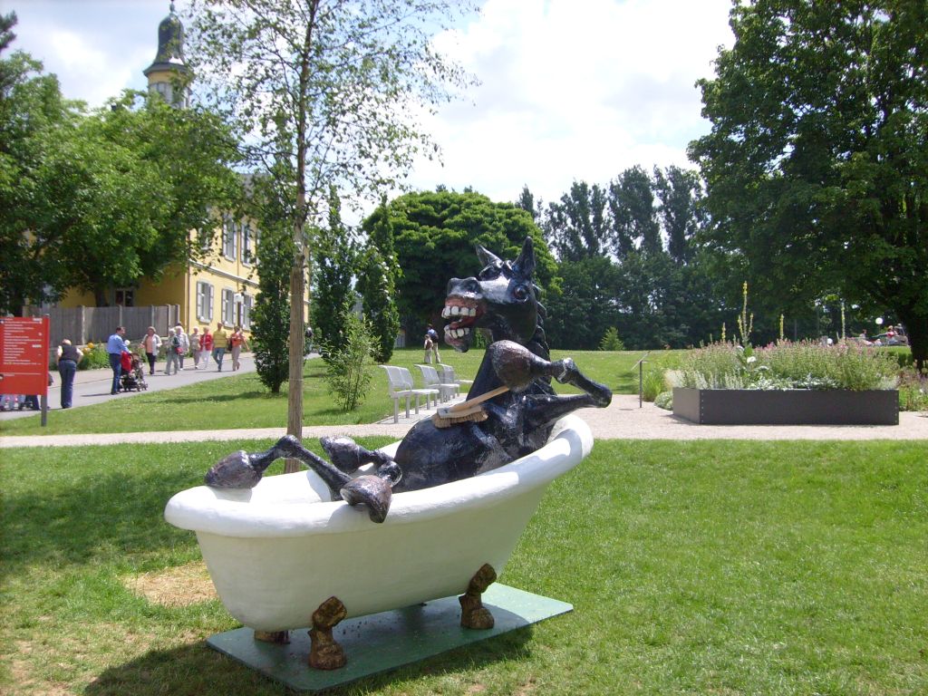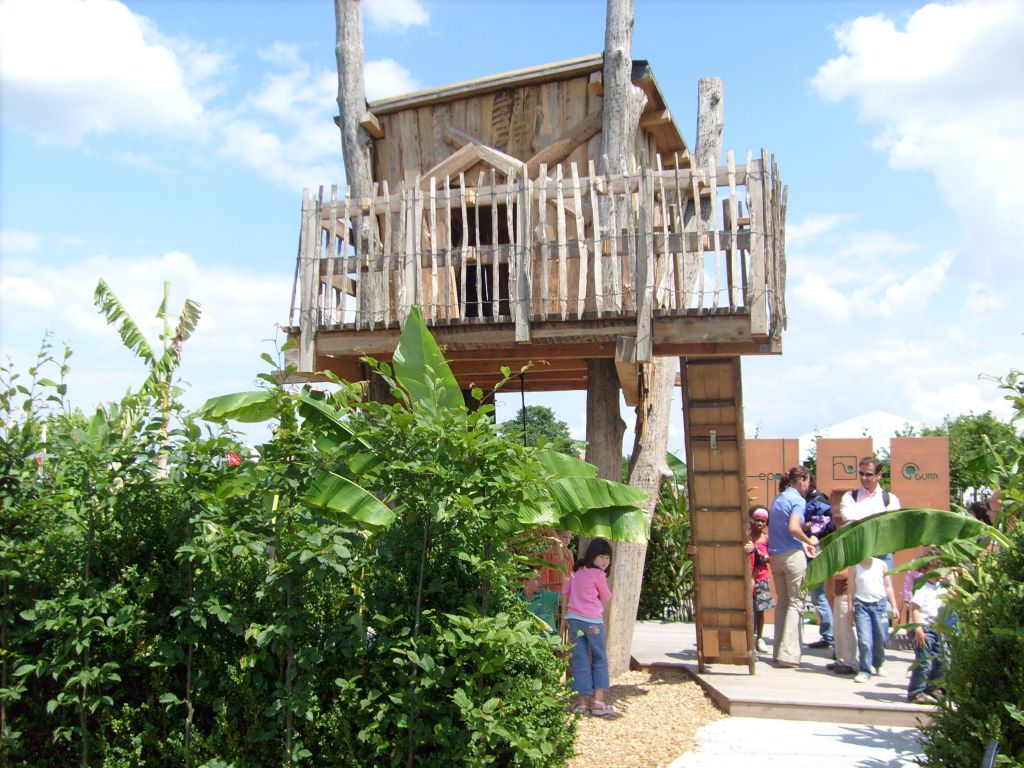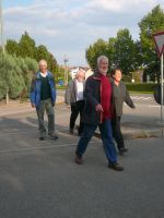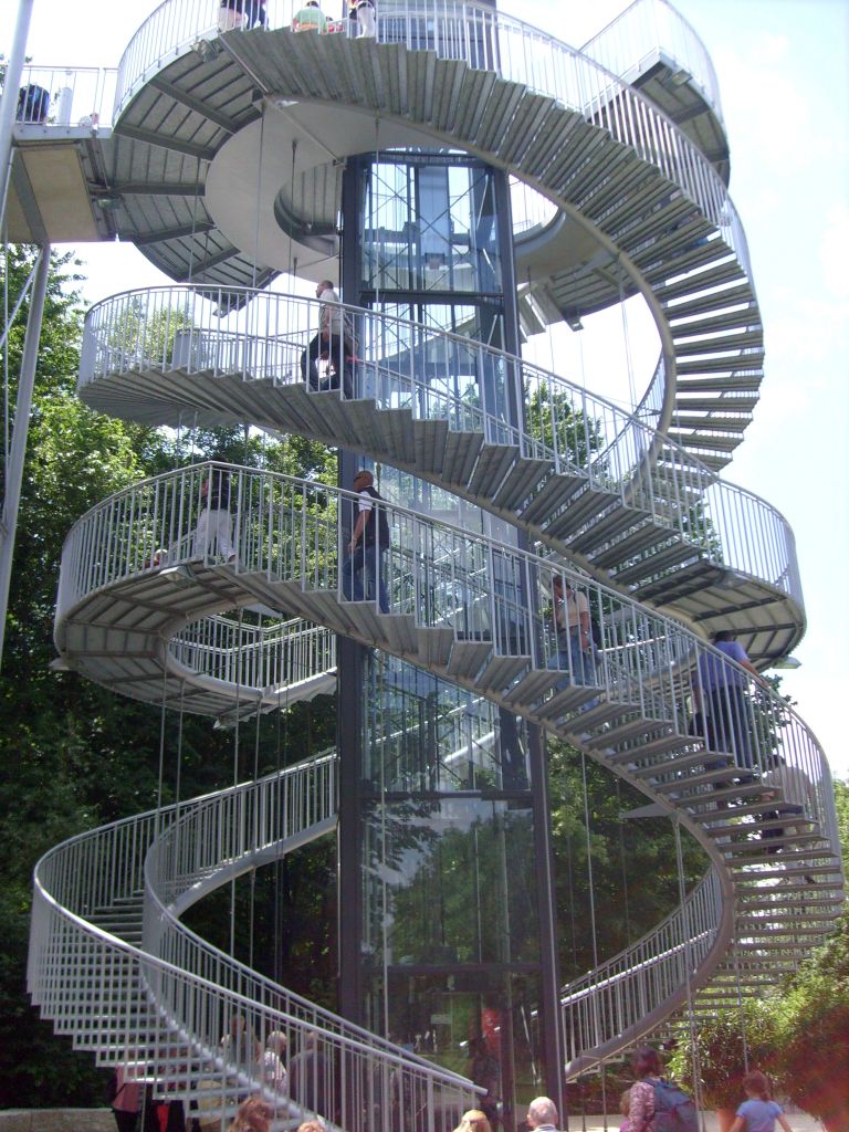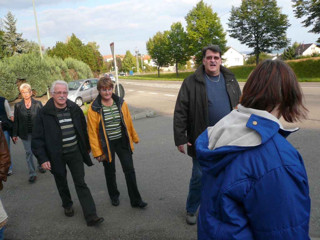 hat sich auch der Löwenzahn schon breit gemacht - und das ohne unser Zutun. Besonders gefiel uns die Reihe der Narzissen hoch oben auf dem Lärmschutzwall, den jemand auf besonderen Wunsch einer Anwohnerin mit Mühe dort hinauf gepflanz hatte. Als kleinen Ausrutscher am Rande sei erwähnt, dass der gelbe Blütenkranz am Kreisverkehr eigentlich das "H" für Höfingen (s.o.) hätte umranden sollen. Allerdings haben die Pflanzarbeiter vergessen, sich nach dem Blühdatum zu erkundigen. So erblühte der Kramz erst, Anfang Mai als die Krokusse vom "H" schon längst nicht mehr zu sehen waren. LOGL- Hauptversammlung und Landesgartenschau 2008Am 14.Juni 2008 fand die Jahreshauptversammlung des Landesverbandes für Obstbau, Garten und Landschaft Baden-Württemberg e.V. (LOGL) in Rappenau statt. Diese Jahreshauptversammlung findet alljährlich am jeweiligen Ort der Landesgartenschau statt. Aus diesem Grund trafen sich am Samstag Morgen um 7:45 Uhr ein paar Vorstands- und Ausschussmitglieder des OGV Höfingen am alten Rathaus und warteten auf den Bus des Kreisverbandes, der uns zu dieser Veranstaltung bringen sollte. Während der Busfahrt wurden wir von unserem amtierenden Vorsitzenden des Kreisverbandes Helmut Plaz begrüßt und über den weiteren Ablauf informiert. Die Höfinger Delegation war die zahlenmäßig stärkste Gruppe aus dem Kreis Böblingen. In Bad Rappenau angekommen wurden wir zu dem "Plenarsaal" der LOGL-Jahreshauptversammlung geführt. Nach den üblichen Begrüßungen und den Grußworten der offiziellen Vertreter der Landesregierung lief die Versammlung wie auch bei unserer Jahreshauptversammlung des OGV Höfingen ab. Es folgten die Berichte des Vorsitzenden, des Schriftführers sowie des Kassierers. Der Hauptunterschied war, dass beim LOGL die Zahlen größer waren. Wir lauschten den Wortbeiträgen - und keiner schlief ein. Die Jahreshauptversammlung endete nach den Wahlen und den obligatorischen Dankesworten glücklicherweise rechtzeitig vor dem Mittagessen und wir Höfinger suchten uns als erstes einmal eine Restauration. Direkt vor dem Eingang zur Landesgartenschau fanden wir das passende Ambiente. Nachdem wir uns etwas gestärkt hatten, nahmen wir die Herausforderung der Landesgartenschau in Angriff. Das auf der Landesgartenschau wohl am häufigsten fotografierte Objekt ist der Treppenturm, der von der unteren zur oberen Ebene der Gartenschau führt. Für nicht ganz schwindelfreie Besucher steht in der Mitte der Treppe ein Aufzug bereit, der die ca. 25 Meter Höhenunterschied auch für Leute eine Wohltat ist, die nicht gut zu Fuß sind.