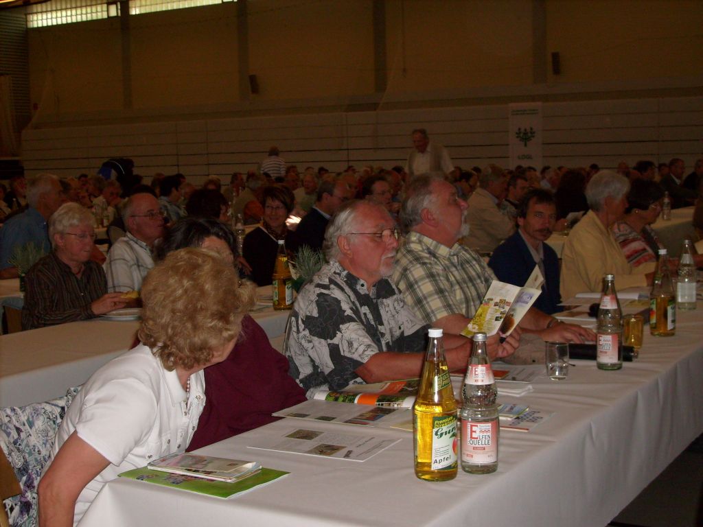 Nach dem 1. Wertungsgang standen je Gruppe die besten 6 Moste fest. Diese wurden in einer weiteren Verkostung nochmals von der anderen Gruppe bewertet. Die Auswertung erfolgt bis Sonntag 22. Juni 2008 wo anlässlich der Sternwanderung der Mostkönig 2008 bekannt gegeben wird. Wer Lust bekommen hat selbst Most herzustellen, kann sich bei den Mitgliedern des Vereins Anregung holen oder beim „Mostprofessor“ Manfred Walz aus Darmsheim an einem Seminar teilnehmen. 75 Jahre Obst und Gartenbauverein Höfingen e.V.Liebe Obst- und Gartenbaufreunde Es gab was zu feiern... der Obst- und Gartenbauverein Höfingen e.V. feierte am Sonntag den, 22. Juni 2008 sein 75 jähriges Jubiläum, im Rahmen der Sternwanderung des Kreisverbandes Böblingen der Obst- und Gartenbauvereine e.V.. Die OGV-Familie sowie alle Freunde und Bekannte der Obst- und Gartenbauvereine sind bei herrlichem Wetter am Sonntag, gegen 9°° Uhr in der festlich geschmückten Strohgäuhalle eingetroffen. Hier fand der ökumenischen Gottesdienst, gehalten von Pfarrer Löw und Diakon Gatzweiler statt. Der Liederkranz Höfingen sowie der Posaunenchor Höfingen sorgte für die musikalische Umrahmung des Gottesdienstes. Nach der Begrüßung des 1. Vorsitzenden Herrn Willy Brösamle, war um 10°° Uhr Start der Wanderrouten: