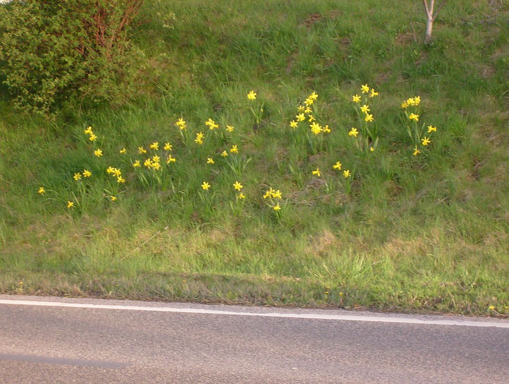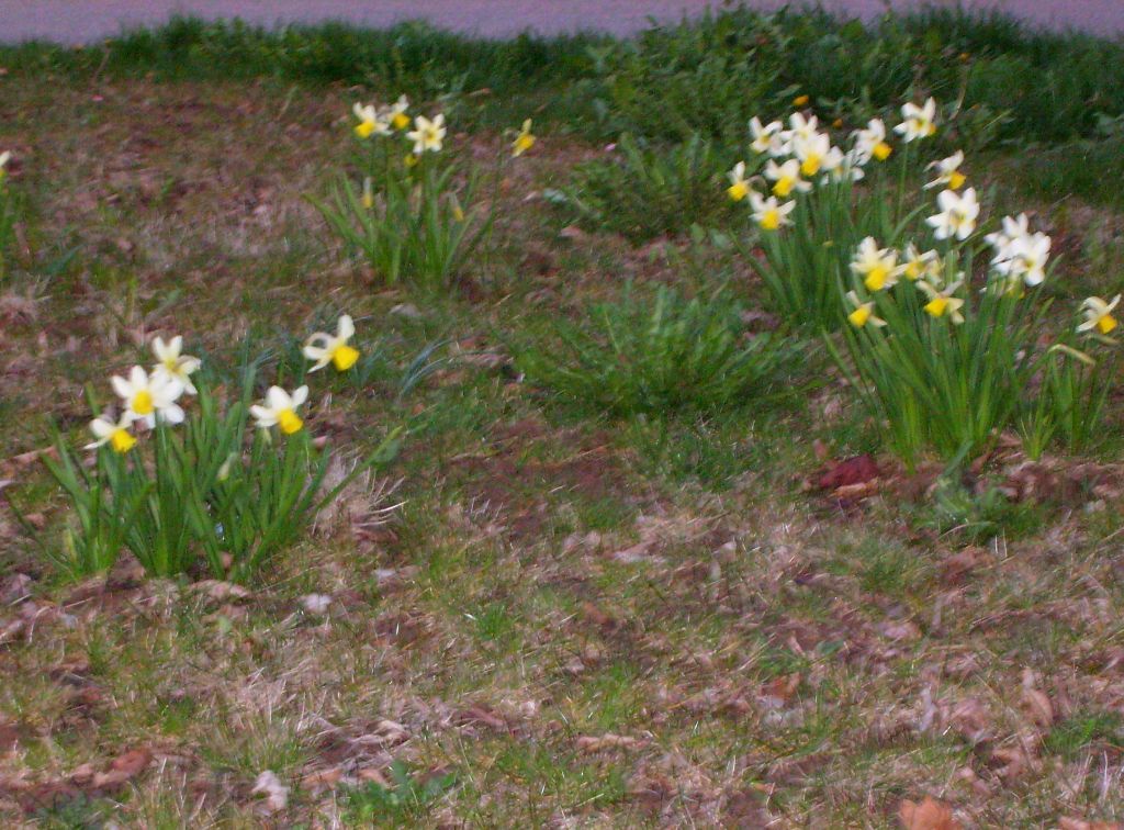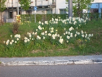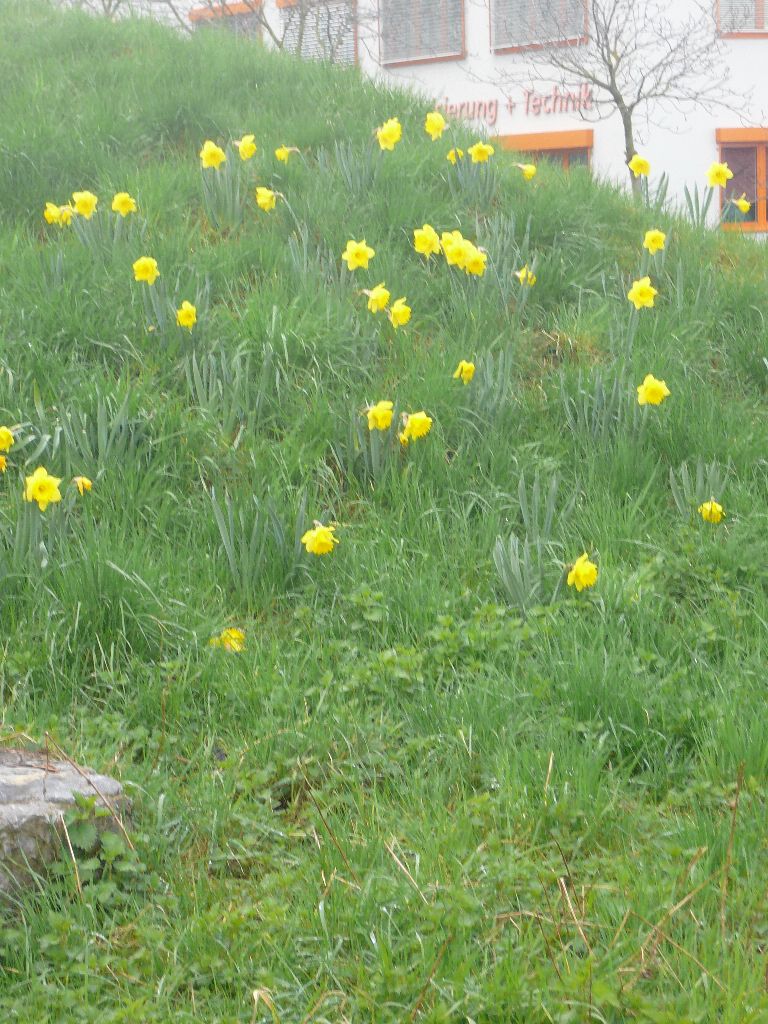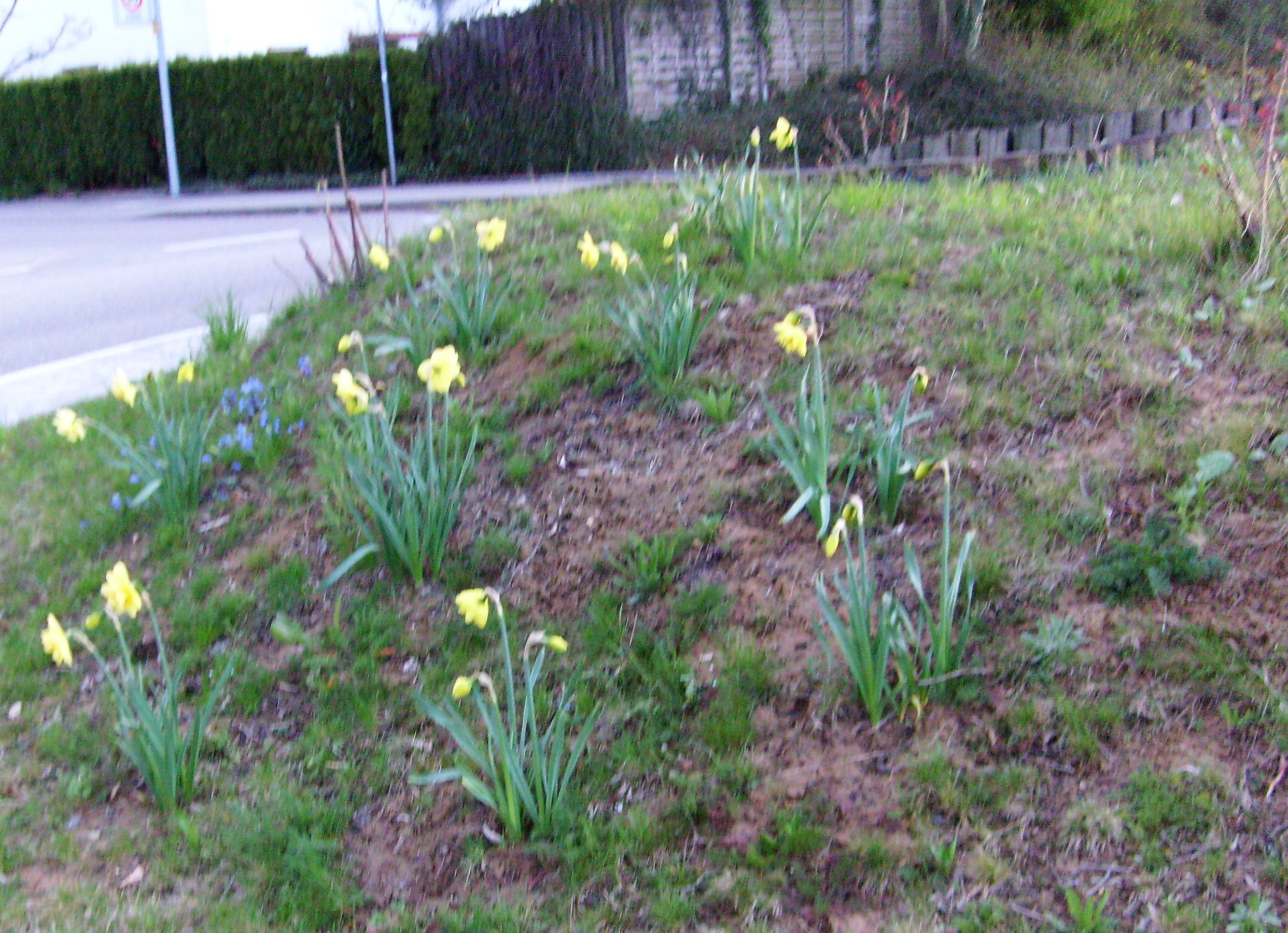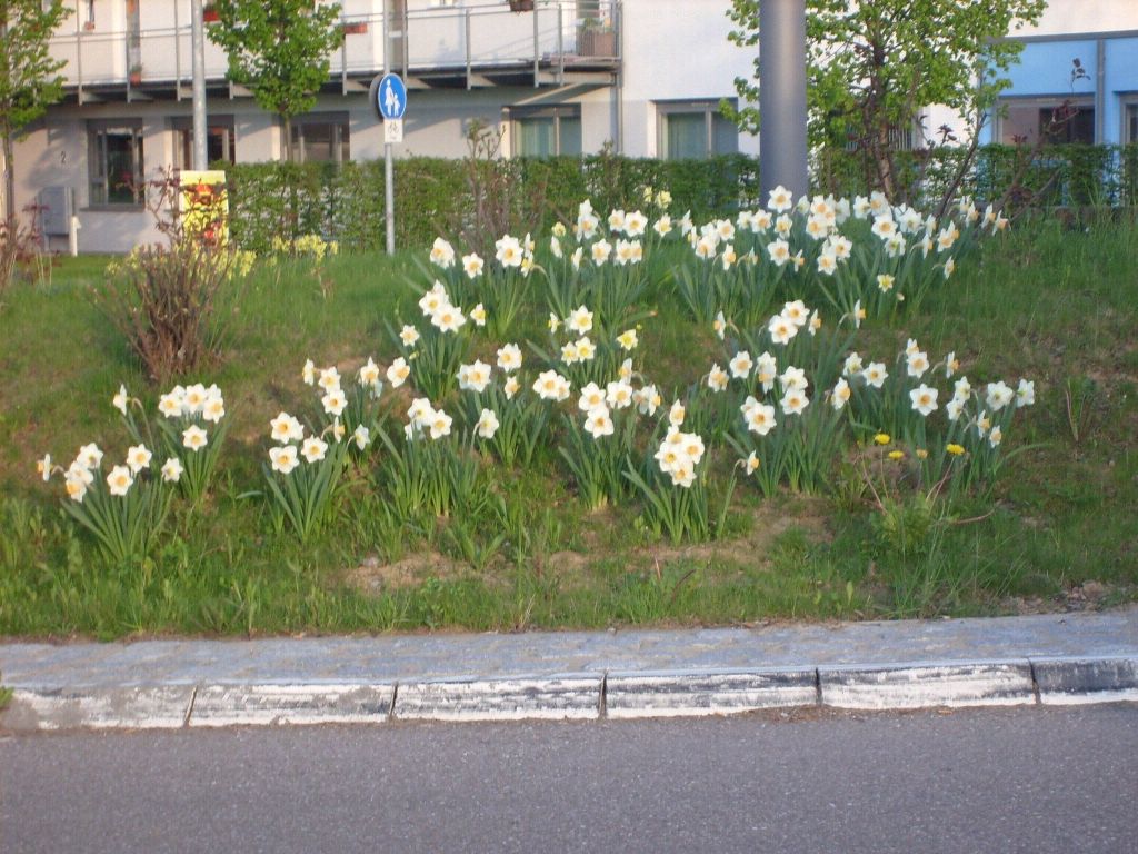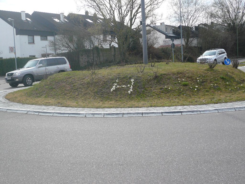 hungrigen Mäusen zum Opfer gefallen, sodass der Blütenflor doch nicht so prächtig ausfiel wie geplant. Etwa drei Wochen später waren die Krokusse verblüht und das "H" am Kreisverkehr nicht mehr zu sehen, dafür blühten die Narzissen voll auf. Wie klar erkennbar ist,