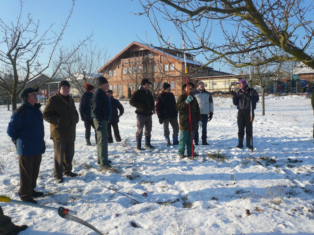 Am 10. Januar führten wir unseren diesjährigen Winterschnittkurs durch. Bei schattigen Minus 10° Grad Kälte sollte man eigentlich zu Hause im Warmen bleiben. Aber Termin ist Termin. So trafen sich insgesamt 20 kälteresistente Interessenten zu unserem Winterschnittkurs.