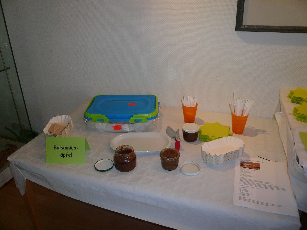 Zum Vergleich der heimischen Äpfel zeigten wir auch so genannte "Chemie- Äpfel" (Sorte Granny Smith) aus dem Supermarkt. Unser Fritz hatte unter anderem Balsamico