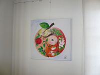 Unsere künstlerisch begabte Bettina hatte zusammen mit ihrer Kollegin ein Plakat entworfen, das innerhalb eines symbolisierten Apfels dessen Werdegang von der Blüte zum