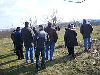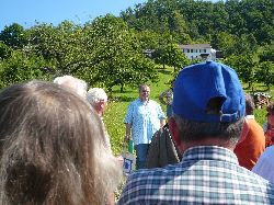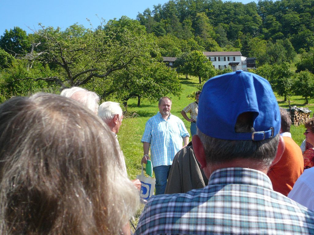 Nach einem 15-minütigen Fußmarsch zu unserer Obstbauwiese präsentierten unsere Fachwarte Horst Kull und Hannes Auzinger unseren Gästen,