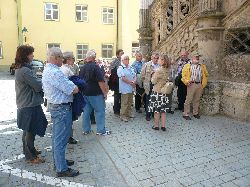 Nördlingen. Wir wurden an den Häusern der Gerber vorbei zum Rathaus der ehemaligen freien Reichsstadt Nördlingen geführt und erfuhren viel von der Geschichte der Stadt, die im Mittelalter ihre Blüte hatte.