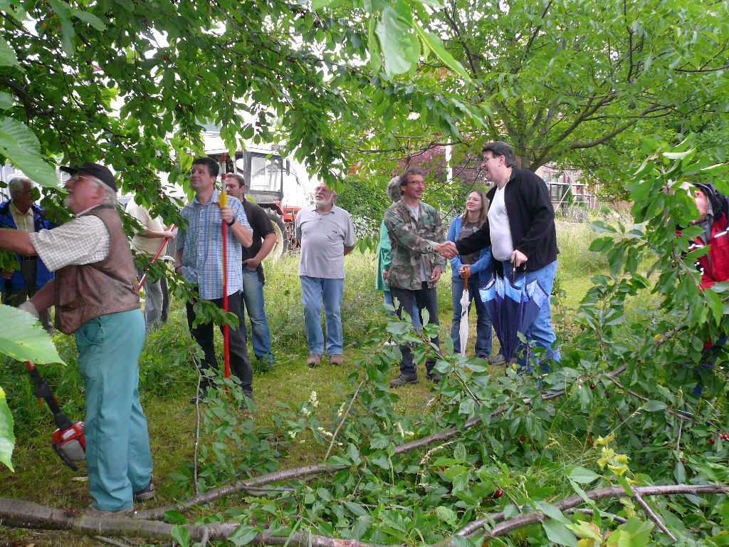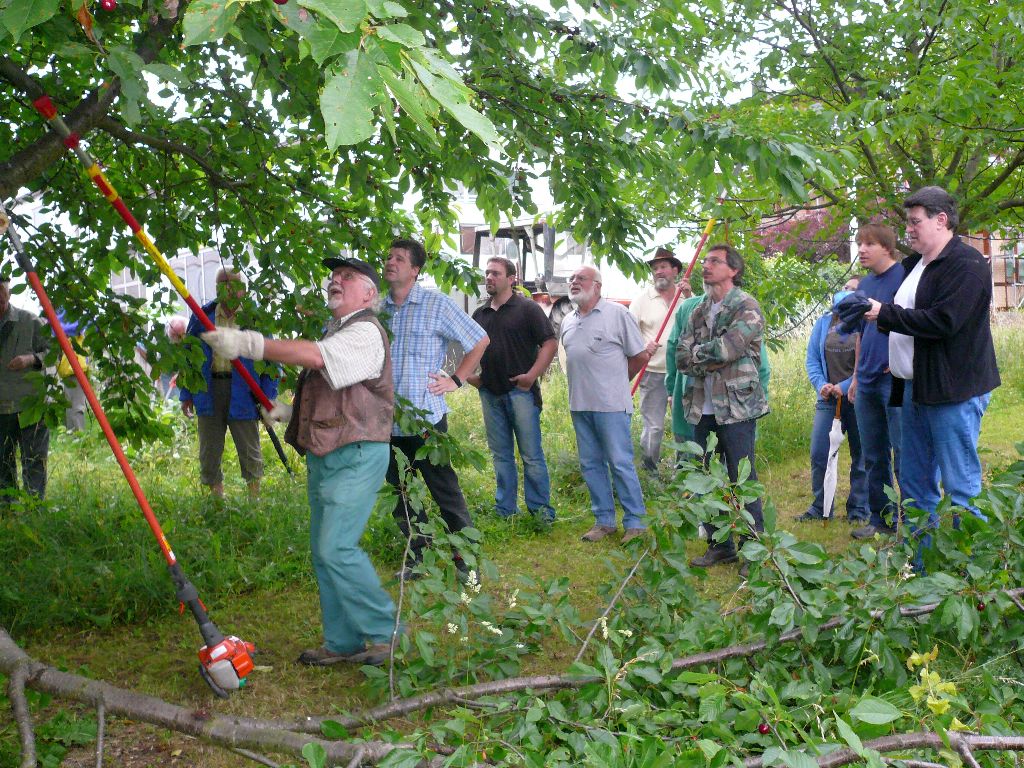 Zunächst erklärte Horst uns, warum man Kirschen im Sommer schneiden sollte und nicht wie die meisten anderen Gehölze im Winter.