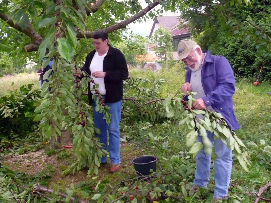 Selbst den Frauen unter unseren Gästen machte diese Art der Kirschenpflückerei Spaß. So konnten wir in diesem Jahr den Kirschbaumschnitt zu einem