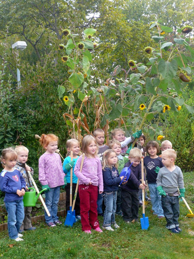 die Sonnenblumen weit mehr als die doppelte Größe der Kinder erreichten.